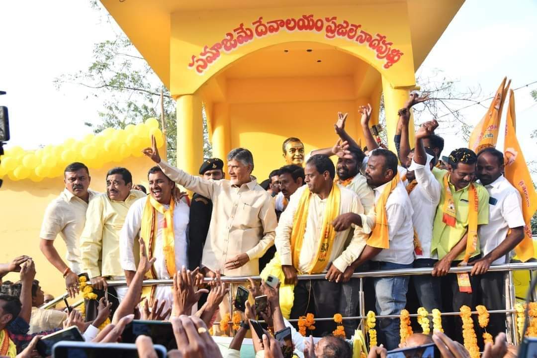 ఖమ్మం జిల్లా జై తెలుగుదేశం నినాదాలతో మార్మోగింది. సర్దార్ పటేల్ స్టేడియంలో టీడీపీ ఆధ్వర్యంలో భారీ బహిరంగ సభ జరిగింది. ఈ సభకు పార్టీ అధినేత నారా చంద్రబాబు నాయుడు హాజరయ్యారు. తనకు దారిపొడవునా చిన్నారులు సైతం జెండాలతో జేజేలు పలికారని అన్నారు. తెలుగుదేశం పార్టీ 40 సంవత్సరాలు పూర్తి చేసుకుందని.. ఎన్టీఆర్ ఓ వ్యక్తి కాదు.. శక్తి అని తెలిపారు. తెలుగుదేశం హైదరాబాద్ గడ్డ మీదే పుట్టిందని గుర్తు చేశారు.
