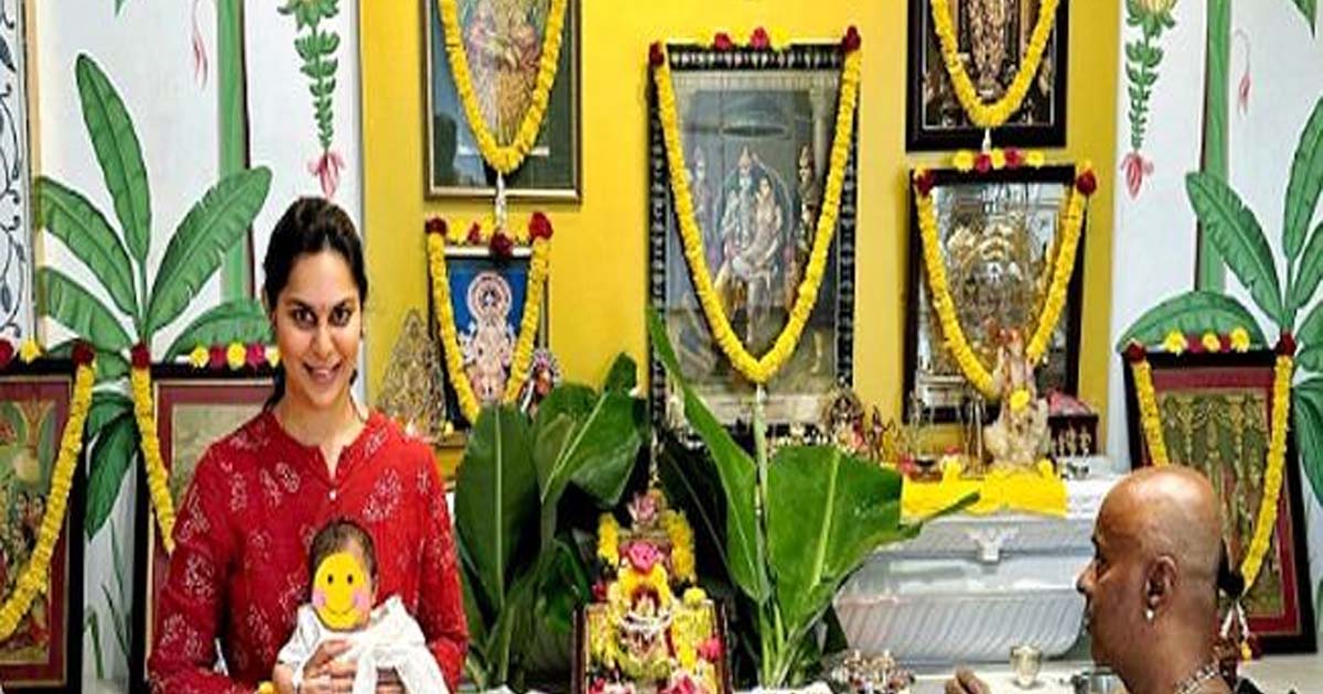తాజాగా తన గారాల పట్టి క్లింకారతో కలిసి తొలిసారిగా వరలక్ష్మి పూజలో పాల్గొన్నటువంటి ఫోటోను షేర్ చేసింది. ఇంతకుమించి మరేది అడగలేను క్లీంకారతో మొదటిసారి వరలక్ష్మీ వ్రతం పూజ అంటూ పోస్ట్ చేసింది. ఈ ఫోటోలో క్లింకారా పేస్ కనపడకుండా కవర్ చేసింది ఉపాసన. ఈ ఫోటోను చూసిన మెగా అభిమానులు సంతోషం వ్యక్తం చేస్తున్నారు కొందరు మా చిట్టి తల్లి అని కామెంట్స్ కూడా చేస్తున్నారు. మరికొందరేమో ఫేస్ చూడాలని ఆసక్తిగా ఉందంటూ పోస్ట్ పెడుతున్నారు. ఏది ఏమైనప్పటికీ క్లింకారా రాకతో మెగా ఫ్యామిలీతో పాటు ఫాన్స్ లో కూడా ఫుల్ ఖుషీ లో ఉన్నారు.