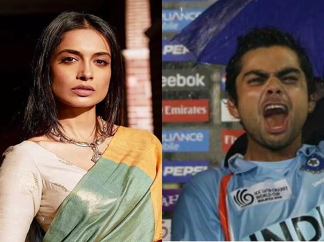 ఈ దక్షిణాది నటి ఐపీఎల్ జట్టు రాయల్ చాలెంజర్స్ బెంగళూరులో చేరినప్పుడు ప్రేమలో పడిందట. విజయ్ మాల్యా ఇచ్చిన పార్టీలో కోహ్లీ ని ఆమె కలిసిందని అనేక వార్తలు వచ్చాయి.