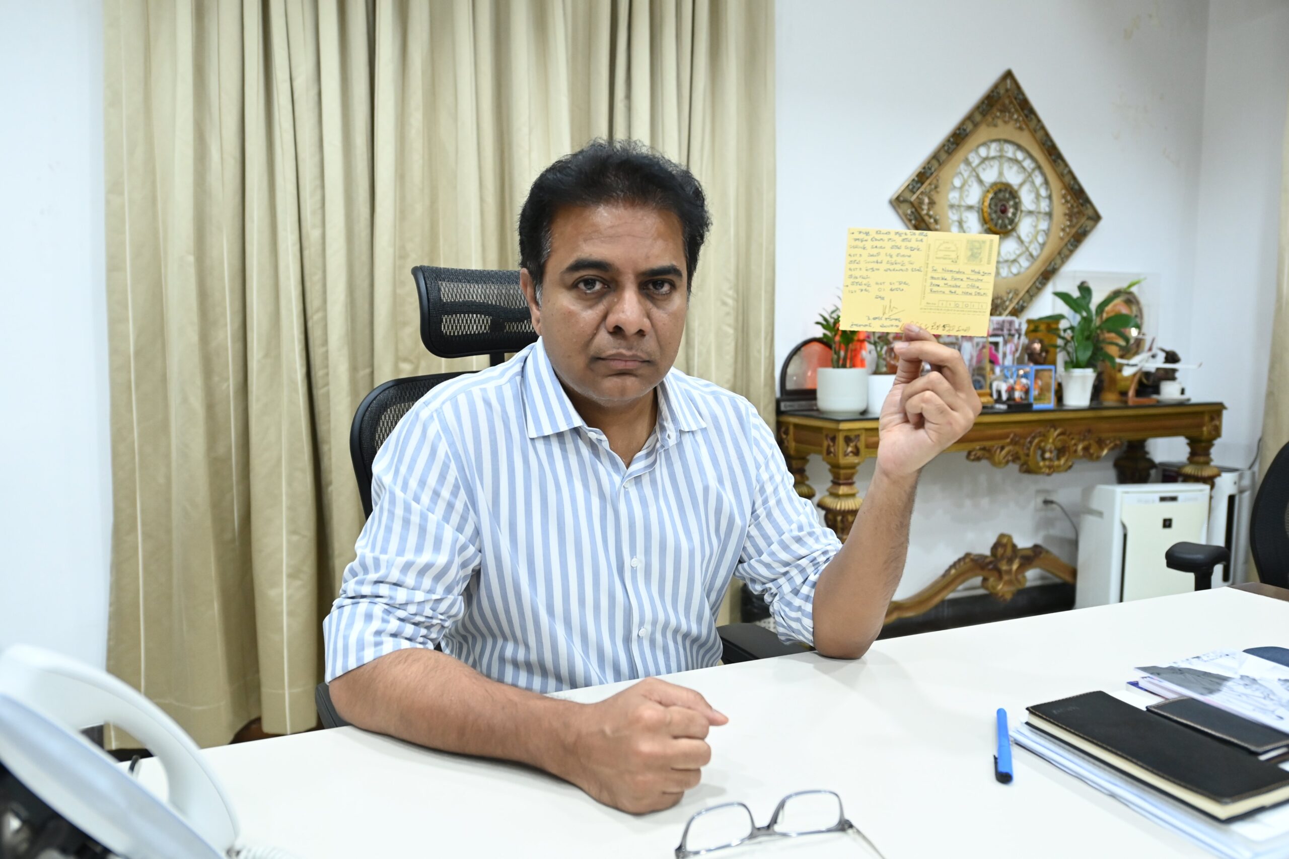 తన స్వాస్తాలతో రాసిన ఈ పోస్ట్ కార్డును ప్రధానమంత్రి కార్యాలయానికి పంపినట్లు కేటీఆర్ వివరించారు. ఈ సందర్భంగా మంత్రి కేటీఆర్ చేనేత కార్మికులకు సంబంధించిన పలు అంశాలను ఒక ప్రకటనలో విడుదల చేశారు. ఇప్పటికే చేనేత కార్మికులకు సంబంధించిన సమస్యలను అనేక సందర్భాల్లో వివిధ వేదికల ద్వారా కేంద్ర ప్రభుత్వం దృష్టికి తీసుకువెళ్లానన్న మంత్రి కేటీఆర్… వాటిపై కేంద్రం నుంచి సానుకూల స్పందన రాలేదని ఆవేదన వ్యక్తం చేశారు.