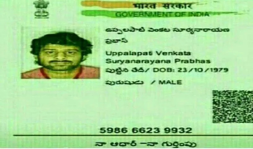 ఈమధ్య రిలీజ్ అయిన ప్రభాస్ సినిమాలు ఏవీ అంతగా ఆకట్టుకోకపోయినా ప్రభాస్ కి ఉన్న ఫాలోయింగ్ ఇసుమంతైనా తగ్గలేదు. అందుకే ప్రభాస్ గురించి ఏ న్యూస్ అయినా క్షణాల్లో వైరల్ అవుతోంది. తాజాగా.. ప్రభాస్ ఆధార్ కార్డు ఒకటి సోషల్ మీడియాలో వైరల్ అవుతోంది. ఈ ఆధార్ కార్డు లో ఉన్న ప్రభాస్ డీటెయిల్స్ చూసి నెటిజన్స్ కూడా షాక్ అవుతున్నారు. కారణం ఏంటంటే, ఇప్పటి వరకు ఎవరికీ ప్రభాస్ పూర్తి పేరు తెలియకపోవడమే.