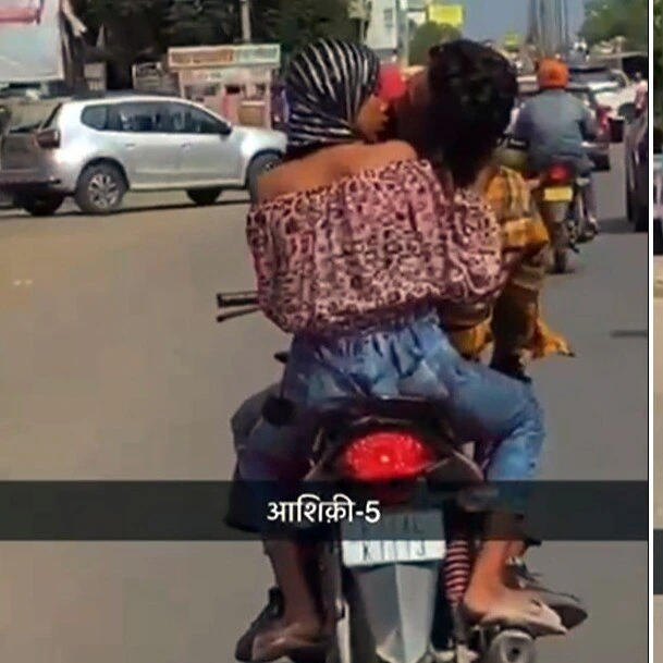రాజస్థాన్లోని జైపూర్లో ఓ జంట ట్రాఫిక్ నిబంధనలను ఉల్లంఘిస్తూ బైక్ డ్రైవింగ్ లో ఉన్న సమయంలో ముద్దు పెట్టుకోవడంతో ఇందుకు సంబంధించిన వీడియో నెట్టింట్లో వైరల్ అవుతోంది. ఈ వైరల్ వీడియోలో ఒక వ్యక్తి రద్దీగా ఉండే రహదారిపై మోటారుసైకిల్ను నడుపుతుండగా, అతని వెనుక ఓ మహిళ కూర్చుని ఉంది. ఆమె తన లవర్ ని నడి రోడ్డు పైనే హాగ్ చేసుకుని కూర్చుంది.