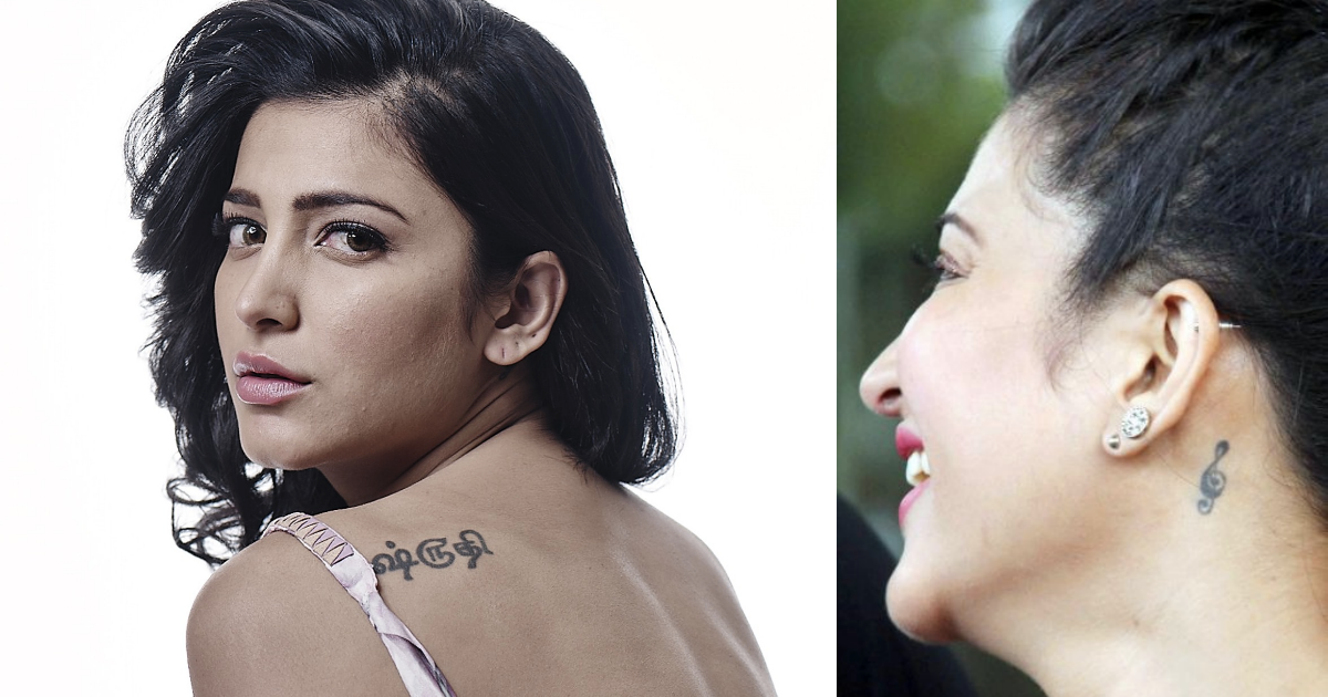 శృతిహాసన్ తమిళ అక్షరాలతో తన పేరును టాటూ వేయించుకుంది..