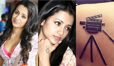 తన ఎద భాగంలో టాటూ కనిపిస్తుంది. డిస్నీ క్యారెక్టర్ నేమ్ త్రిష మొదటి టాటూ.. ఆ తర్వాత చేతి భాగంలో వృషభరాశి గుర్తును వేయించుకుంది. ఆ తర్వాత తన తిని ప్రపంచమైన ఎడమ భుజంపై ట్రైపాడ్ విత్ కెమెరా ని వేయించుకుంది.