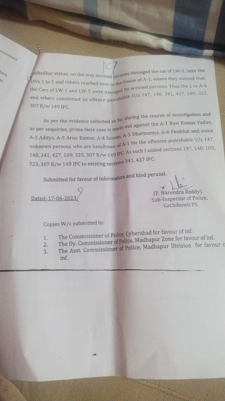 తమ వాహనాలను ధ్వంసం చేయడంతో పాటు హత్యాయత్నానికి పాల్పడ్డారంటూ రవి యాదవ్ పై మండిపడ్డారు. దీనిపై వారు పోలీసులకు ఫిర్యాదు చేశారు. ఈ ఫిర్యాదు మేరకు రవి యాదవ్ తో పాటు మరో ఐదుగురు వ్యక్తులపై పోలీసులు కేసులు నమోదు చేశారు. అనంతరం దర్యాప్తు మొదలు పెట్టారు. ఆ తర్వాత కొంత కాలానికి అధికారుల బదిలీలు జరిగాయి. దీంతో కేసు అటకెక్కింది.