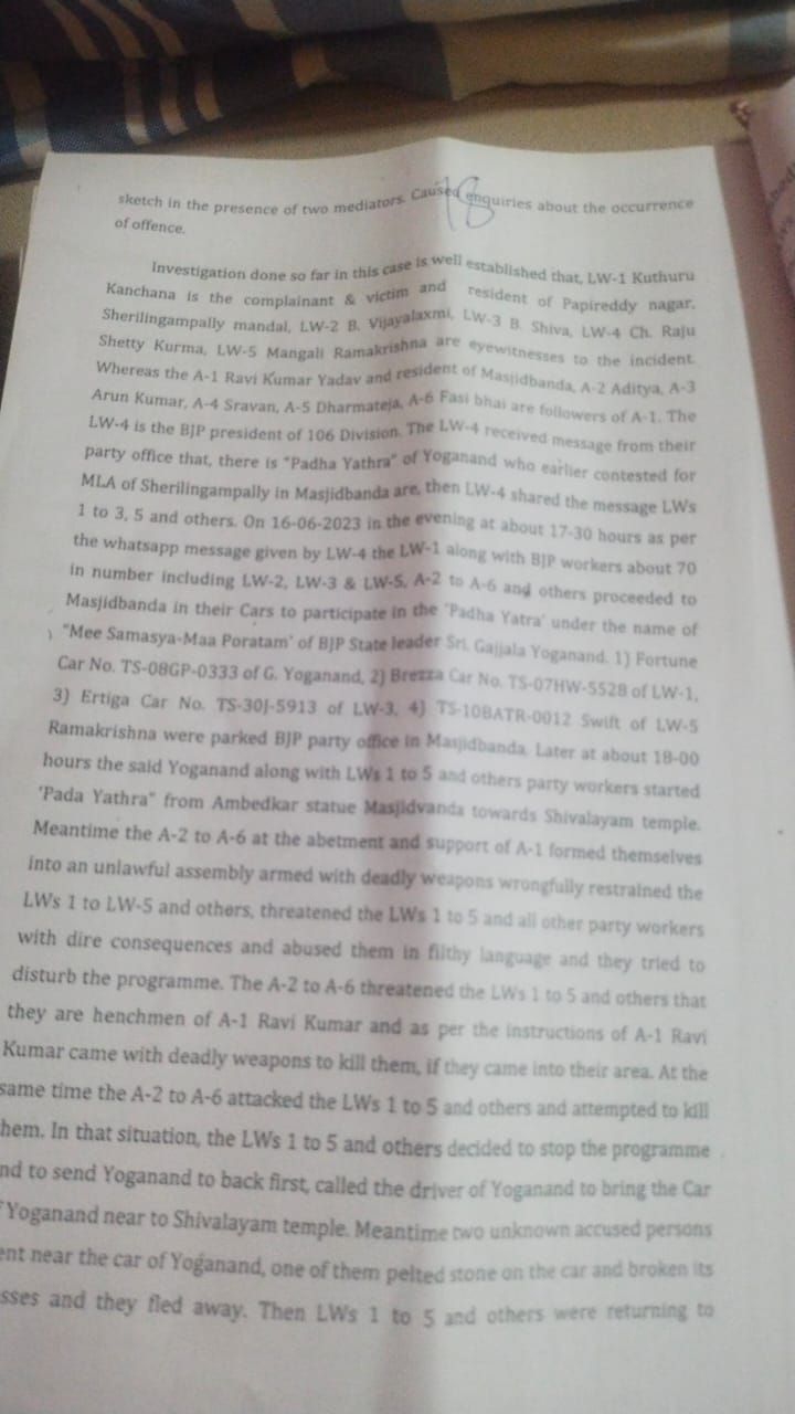 ఈ ఏడాది జూన్ 16న శేరిలింగంపల్లి మండలంలో మజీద్ బండలో బీజేపీ నేత గజ్జెల యోగానంద్ ‘మీ సమస్య- మా పోరాటం’ కార్యక్రమాన్ని నిర్వహించారు. ఈ కార్యక్రమానికి చాలామంది బీజేపీ కార్యకర్తలు, ప్రజలు మజీద్ బండకు వెళ్లారు. అక్కడ వార్డు కార్యాలయం వద్దకు వెళ్లిన తమపై రవి యాదవ్ వర్గీయులు దాడి చేశారని బాధితులు ఆరోపించారు.