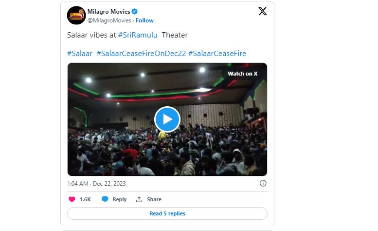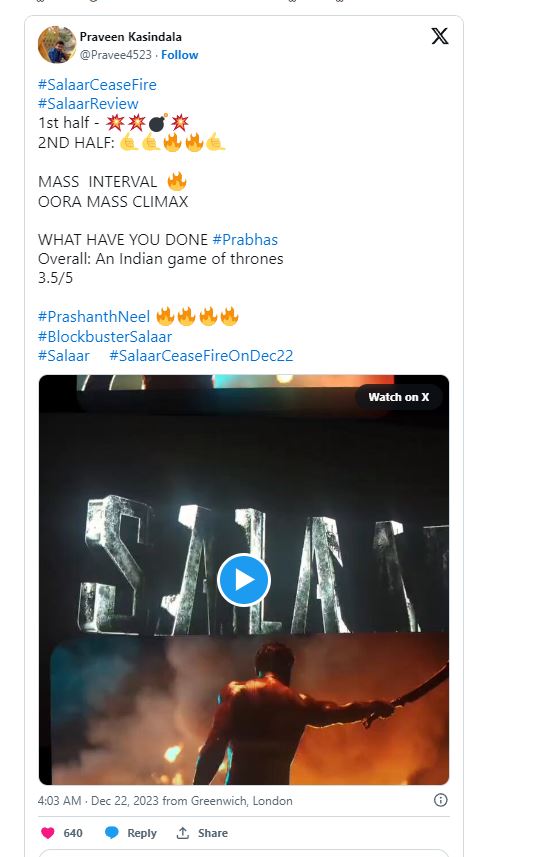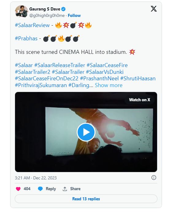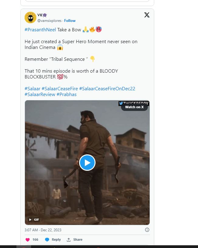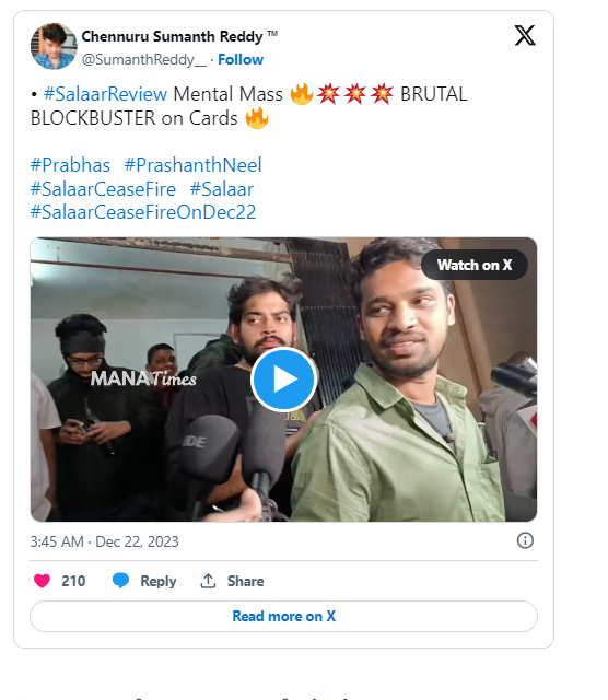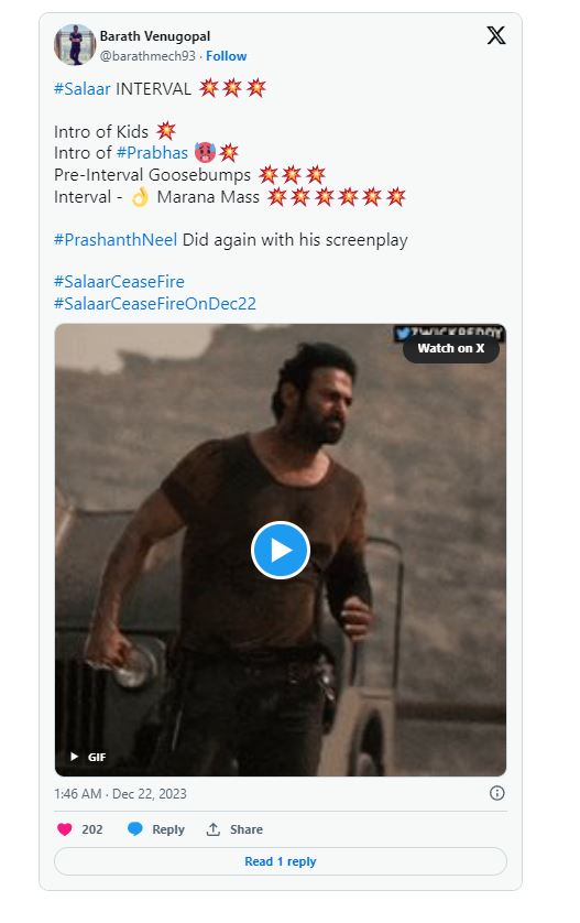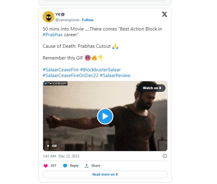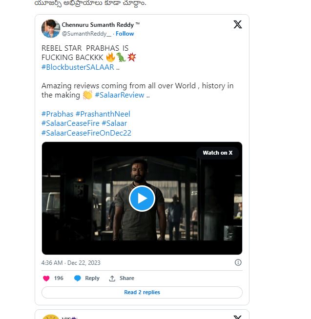 Salaar Twitter Review: ప్రభాస్ ఫాన్స్ ఎప్పుడెప్పుడా అంటూ ఎదురు చేసుతున్న రోజు రానే వచ్చింది. ప్రపంచవ్యాప్తంగా పాన్ ఇండియన్ లెవెల్ లో ప్రభాస్ ‘సలార్’ ఇవాళ విడుదలయ్యింది. అర్ధరాత్రి 1 నుంచే షోస్ మొదలయ్యాయి., మరి కొన్ని ప్రాంతాల్లో తెల్లవారుజామున 4 నుంచి షోస్ మొదలయాయ్యి. ఇక ఈ సినిమా నుంచి వచ్చిన రెండు ట్రైలర్స్ సినిమా మీద మరింత హైప్ పెంచేలా చేసాయి.