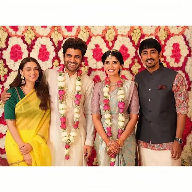 సిద్దార్థ్ రూమర్ గర్ల్ ఫ్రెండ్ అదితి రావు హైదరి కూడా వచ్చింది. అంతేకాకుండా వీరిద్దరూ కలిసి శర్వానంద్ జంటతో కలిసి ఫోటో దిగారు. అయితే గతంలో శర్వానంద్,సిద్ధార్థ హీరోలుగా మహాసముద్రం అనే సినిమాలో నటించారు. ఈ సినిమాలో అదితి హీరోయిన్ గా నటించింది. కాగా, సినిమా సమయంలో సిద్ధార్థ్ తో అదితి రావు ప్రేమలో పడినట్టు తెలుస్తోంది. ఈ సినిమా షూటింగ్ తర్వాత కూడా సిద్ధార్థ్, అదితి కలిసి చట్టపట్టలేసుకుని తిరుగుతున్నారు.