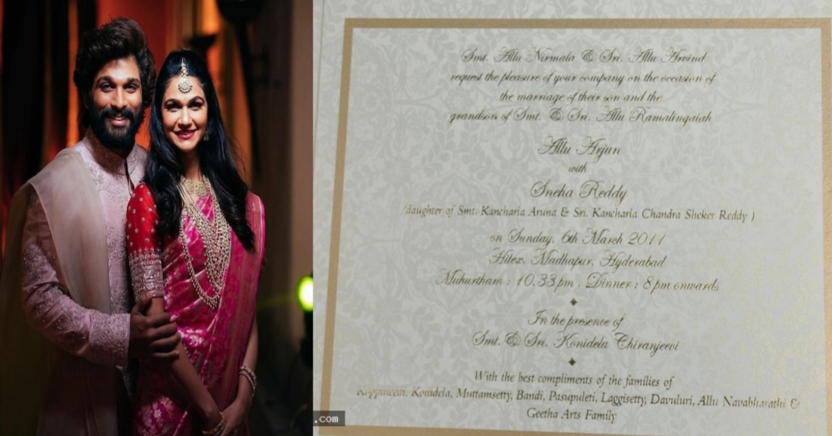 అల్లు అర్జున్ రెడ్డిల వివాహం మార్చి ఆరవ తేదీన 2011లో జరిగింది.