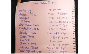ఆరేళ్ళ పిల్లాడి టైమ్ టేబుల్ వైరల్.. చూసారంటే అస్సలు నవ్వు ఆపుకోలేరు..!