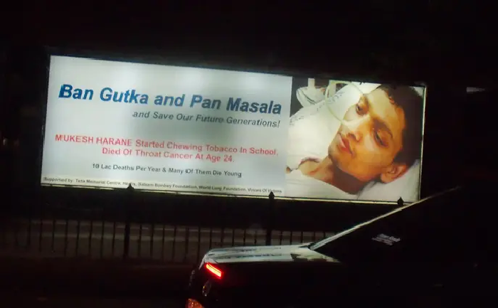 ఆరోగ్యం పాడైన గుట్కా అని తినడం మానలేదు నోటి క్యాన్సర్ వచ్చింది ఆపరేషన్ చేయాల్సి వచ్చింది. అతను ఆసుపత్రిలో ఉన్నప్పుడు భారత ప్రభుత్వం అక్కడికి వెళ్లి యాడ్ ని షూట్ చేశారు. మాట్లాడలేని పరిస్థితిలో ఉన్నపుడు అయినా కూడా గుట్కా వల్ల తాను పడిన బాధ గురించి వివరించాడు. డాక్టర్లు నోటి క్యాన్సర్ ఉందని ఓకల్ కార్డ్స్ ని తొలగించారు అయినా సరే ఎంతో ఇబ్బంది పడి 27 అక్టోబర్ 2009లో ముకేశ్ చనిపోయాడు. ఇంకో ఎడ్వర్టైజ్మెంట్లో సునీత అని ఒక ఆవిడ కనబడుతుంది.
