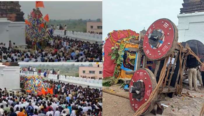కర్ణాటకలోని చామరాజ్ నగర్ లో చెన్నప్పనపురం అనే గ్రామం ఉంది. ఇక్కడ రథోత్సవానికి ఎంతో ప్రత్యేకత ఉంది. రెండేళ్ల తరవాత వీరభద్రేశ్వర స్వామి ఆలయంలో ఉత్సవాలు చేస్తున్నారు. ఈ సందర్భంగా రథోత్సవానికి ఏర్పాటు చేశారు. అయితే.. ఉన్నట్టుండి రథం విరిగిపడింది. ఆ సమయంలో దాని చుట్టూ దాదాపు 800 మంది ఉన్నారు. అదృష్టవశాత్తూ ఎవరూ గాయపడలేదు.