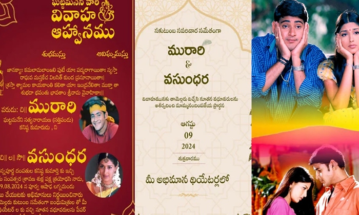 ఈ క్రమంలోనే ఇందుకు సంబంధించిన అధికారిక ప్రకటన కూడా వచ్చింది. రీ రిలీజ్ కొంచెం వినూత్నంగా ప్లాన్ చేశారు. ఘట్టమనేని వారి వివాహ ఆహ్వాన పత్రిక అంటూ పెళ్లి కార్డుల రూపంలో డిజైన్ చేసి ప్రతి ఒక్కరిని కూడా ఆహ్వానిస్తున్నారు. ప్రస్తుతం ఈ మూవీ రీ రిలీజ్ కి సంబంధించిన ఒక వెడ్డింగ్ కార్డ్ సోషల్ మీడియాలో వైరల్ అవుతోంది. ఘట్టమనేని వారి వివాహ ఆహ్వానం అని వరుడు మురారి, వధువు వసుంధర అని ఈ వివాహ పత్రికను తయారు చేశారు.