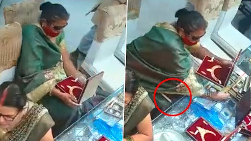 మాటల్లో దింపి రూ.10 లక్షల నెక్లెస్ కొట్టేసింది..వీడియో వైరల్